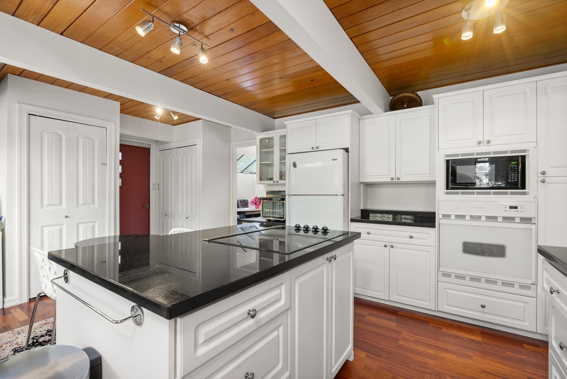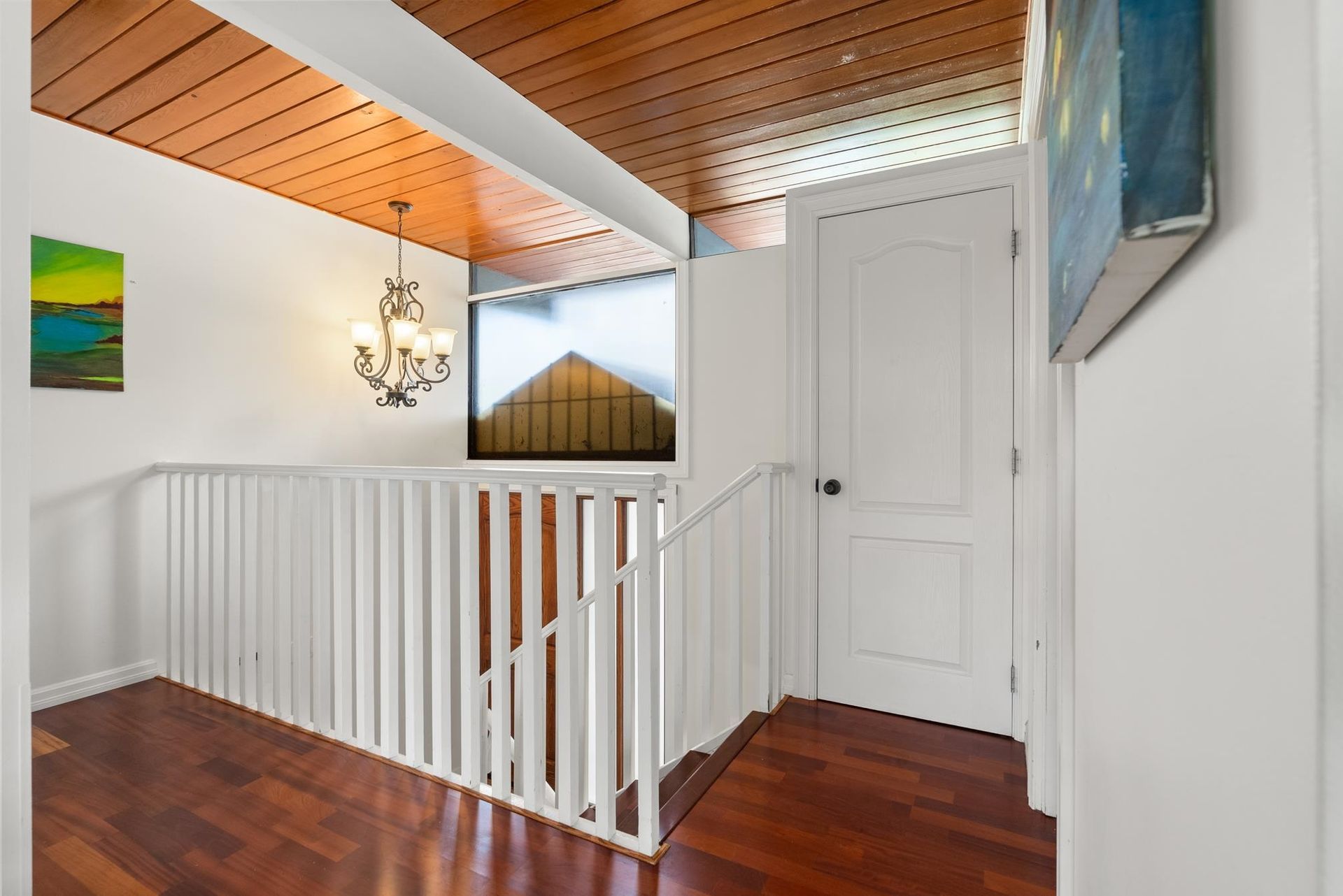 This well-maintained family home offers the perfect blend of convenience and tranquility.Located just steps from the new Delbrook Community Centre,Westview Shopping Mall,top-rated elementary schools&parks,yet nestled at the end of a quiet cul-de-sac,it truly has it all.Boasting a bright and open layout,the main floor features a spacious living & dining area,an updated kitchen with an eating nook& 2 bedrooms,including a master suite with an ensuite bathroom.Step outside onto your private balcony and enjoy the southern exposure.The walk-out basement is equally impressive,with a large recreation room 2 more bedrooms,a full bathroom, and a den—perfect for a home office,gym or extra storage.Ongoing updates give peace of mind,including a newer roof,newer energy-efficient furnace hot water tank.